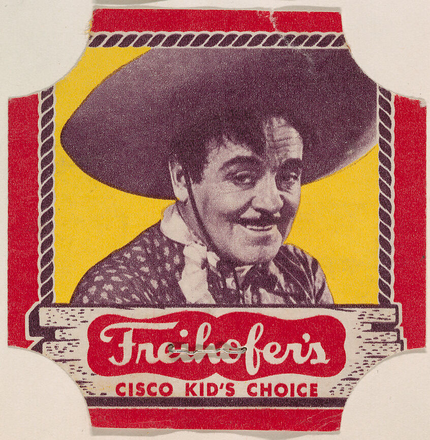Cisco Kid (red border set), from the Bread End Labels series (D290-4) issued by Freihofer Baking Company. (Album 307, page 131)