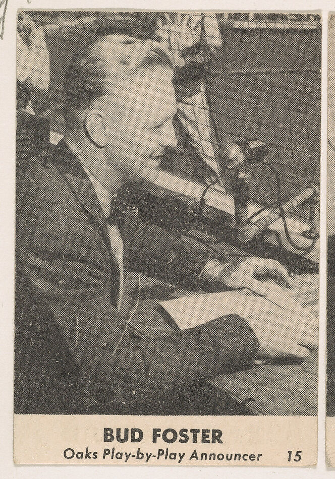 - Title: Bud Foster, Oaks Play-by-Play Announcer, No. 15, from the Oakland Baseball Players (Oaks) series (D317), issued by Sunbeam Bread and Remar Bread