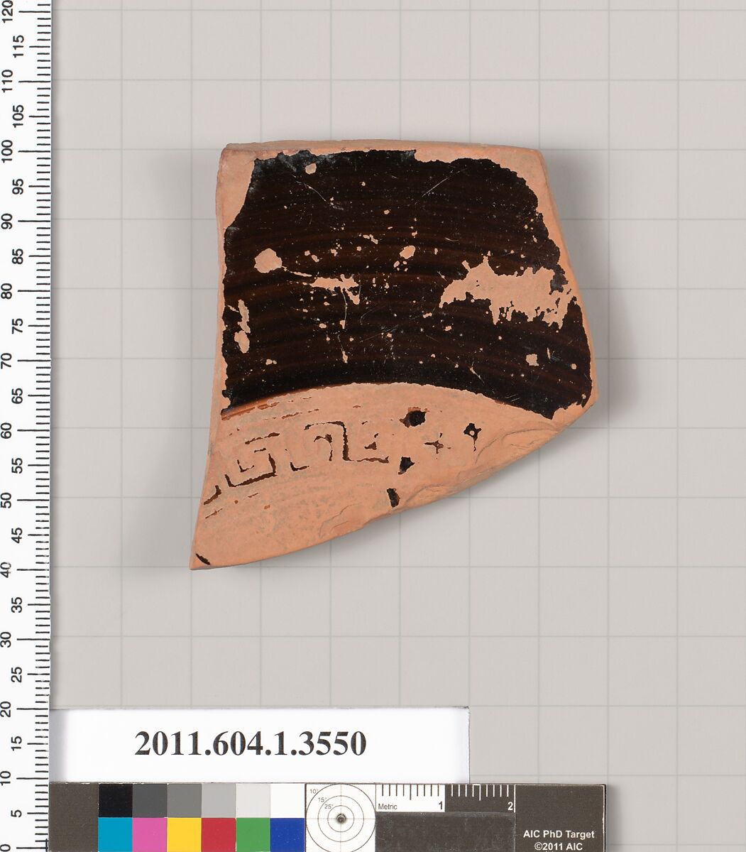 - Title:Terracotta fragment of a kylix (drinking cup)
