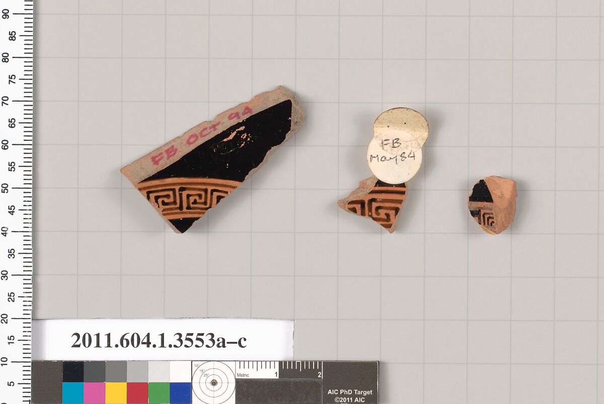 Interior, three kylix fragments with meander; Exterior, parts of palmettes and tendrils