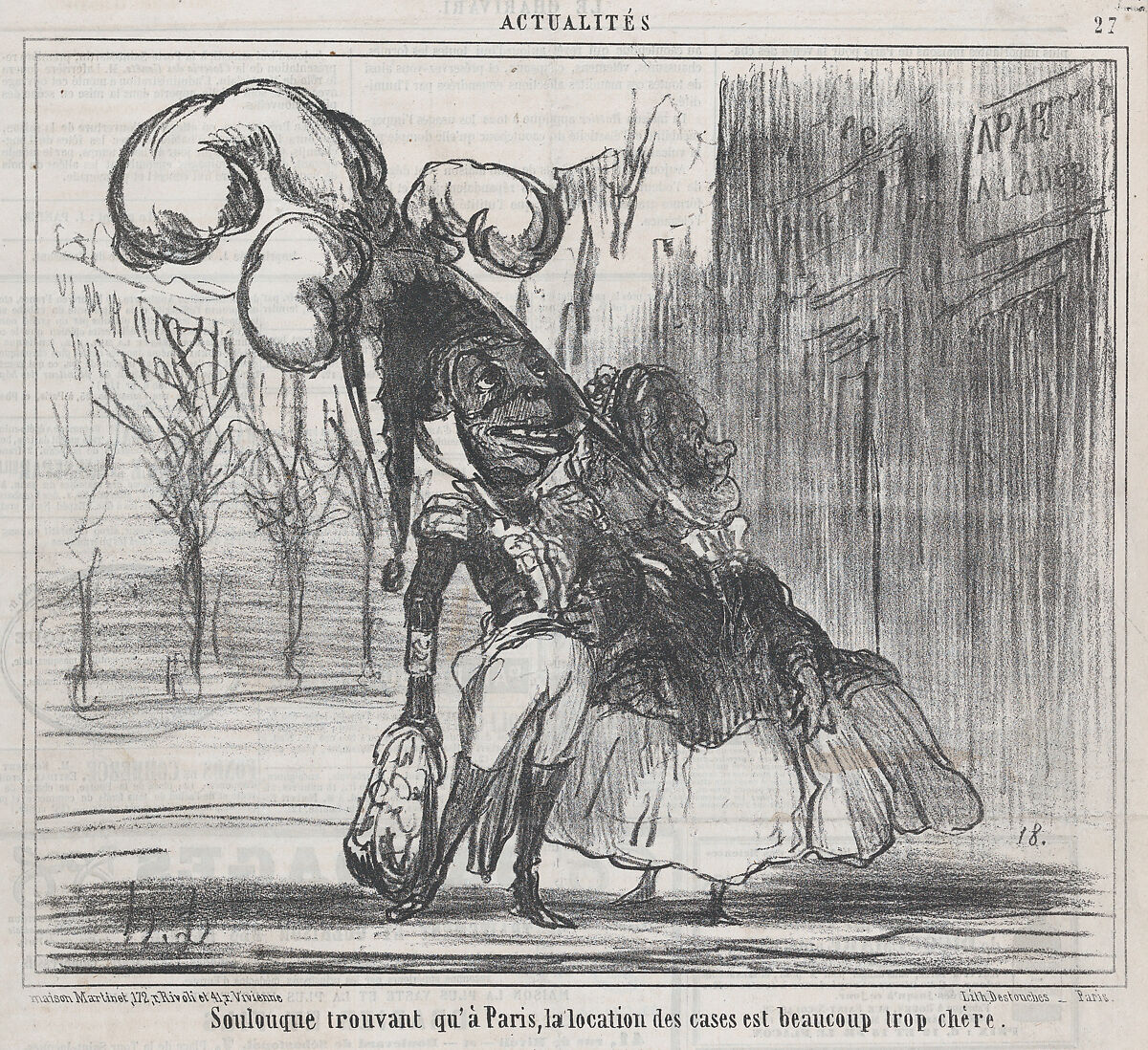 - Title:Soulouque trouvant qu'à Paris, la location des cases est beaucoup trop chère, from Actualités, published in Le Charivari, April 9, 1859