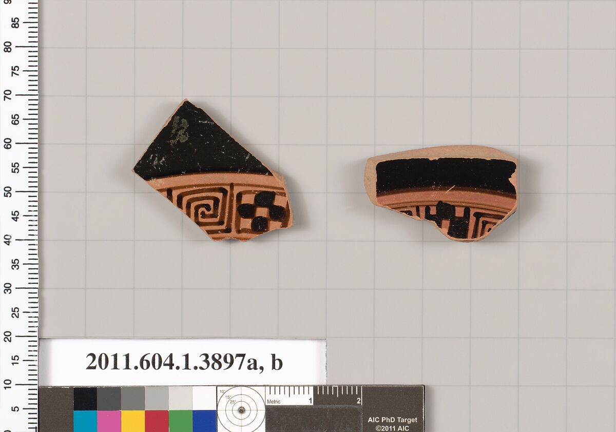 - Title:Terracotta fragments of kylikes (drinking cups)