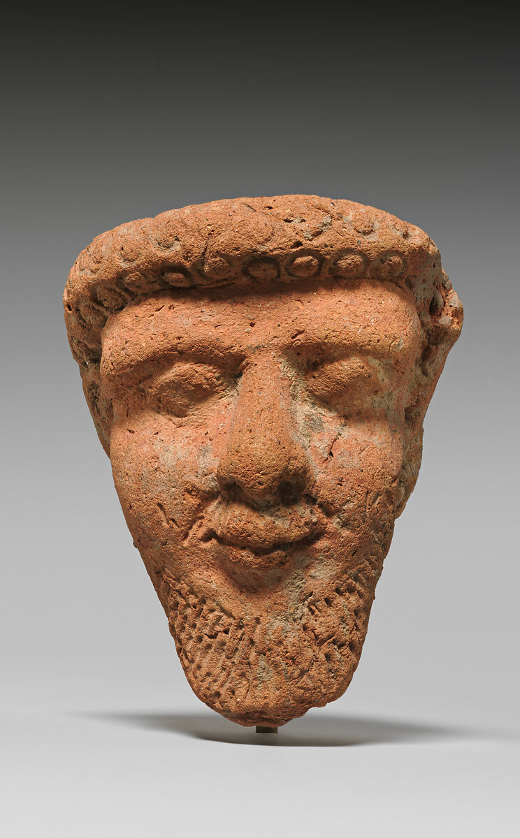 Egyptian pottery figure types derived from a Greek tradition were popular in the Ptolemaic Period, along with techniques introduced from Greek workshops. This head with curly hair and beard does not seem to fit the categories of gods or festival figures. Although no particular 'type' can be identified, it may rather be associated with the Hellenistic interest in the array of human types.