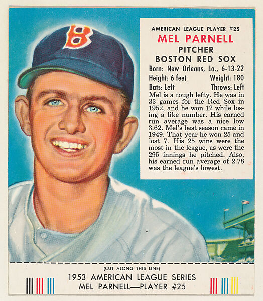 - Title: Mel Parnell, from the Red Man All-Star Team series (T233), issued by Red Man Chewing Tobacco