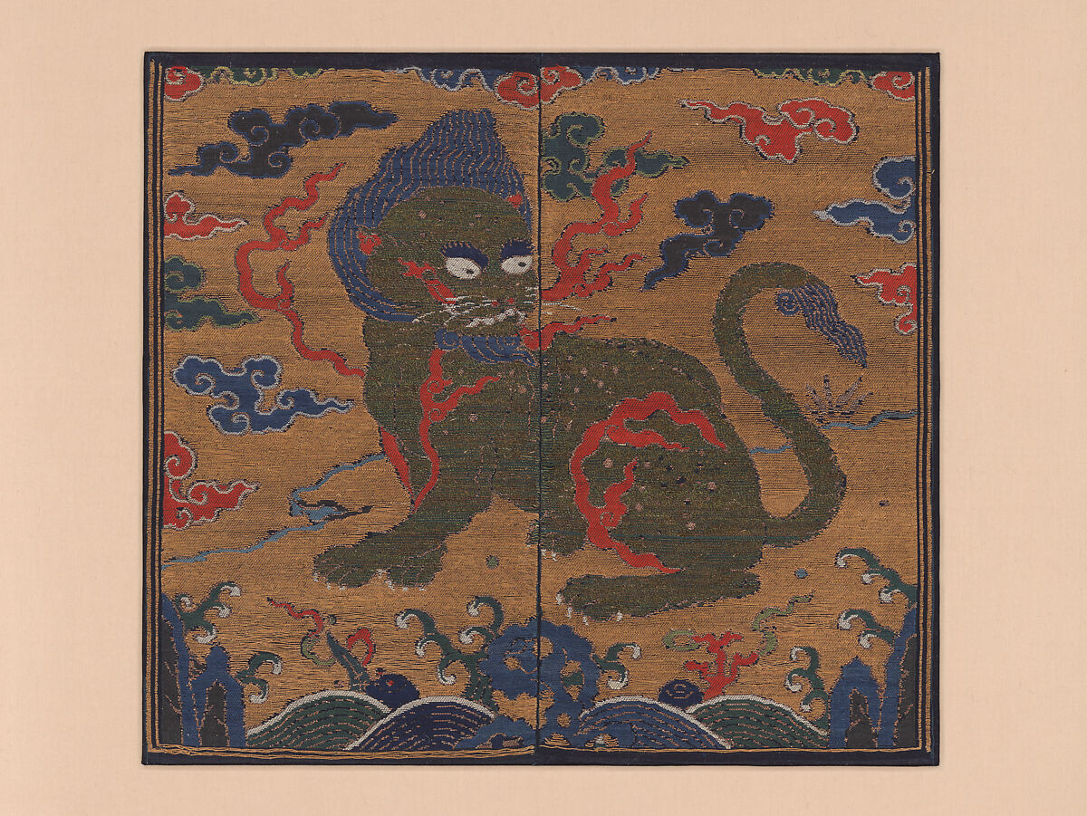 The bear represents the fifth military rank. While the birds used in Chinese rank badges correspond to actual species, the animals usually do not. Instead, many are fantastic animals, and all were chosen for their supernatural power. Bears on rank badges do not resemble bears in nature. Instead, they often feature an upswept mane, an emphasis on the paws (very long in this example), and an extended tail.