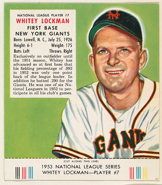 - Title:Whitey Lockman, from the Red Man All-Star Team series (T233), issued by Red Man Chewing Tobacco