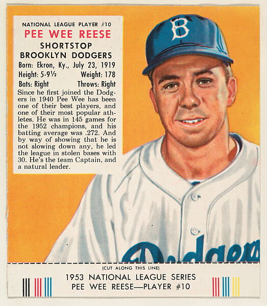 - Title:Pee Wee Reese, from the Red Man All-Star Team series (T233), issued by Red Man Chewing Tobacco