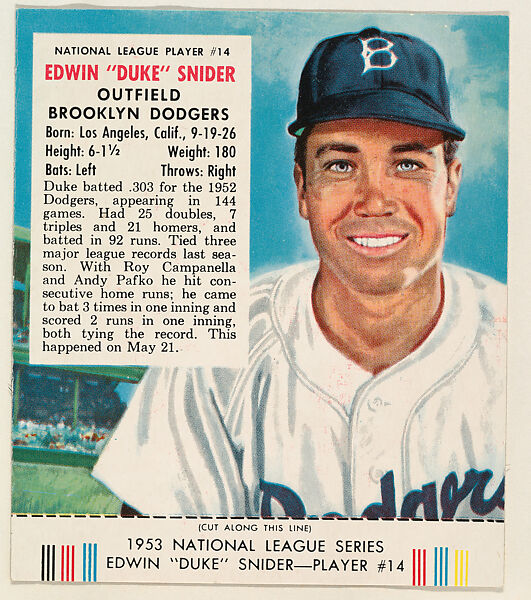 • Title: Edwin "Duke" Snider, from the Red Man All-Star Team series (T233), issued by Red Man Chewing Tobacco