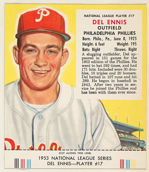 - Title: Del Ennis, from the Red Man All-Star Team series (T233), issued by Red Man Chewing Tobacco