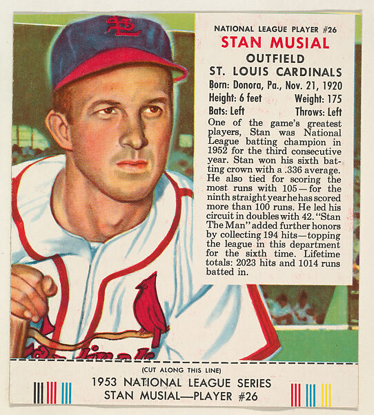 - Title:Stan Musial, from the Red Man All-Star Team series (T233), issued by Red Man Chewing Tobacco