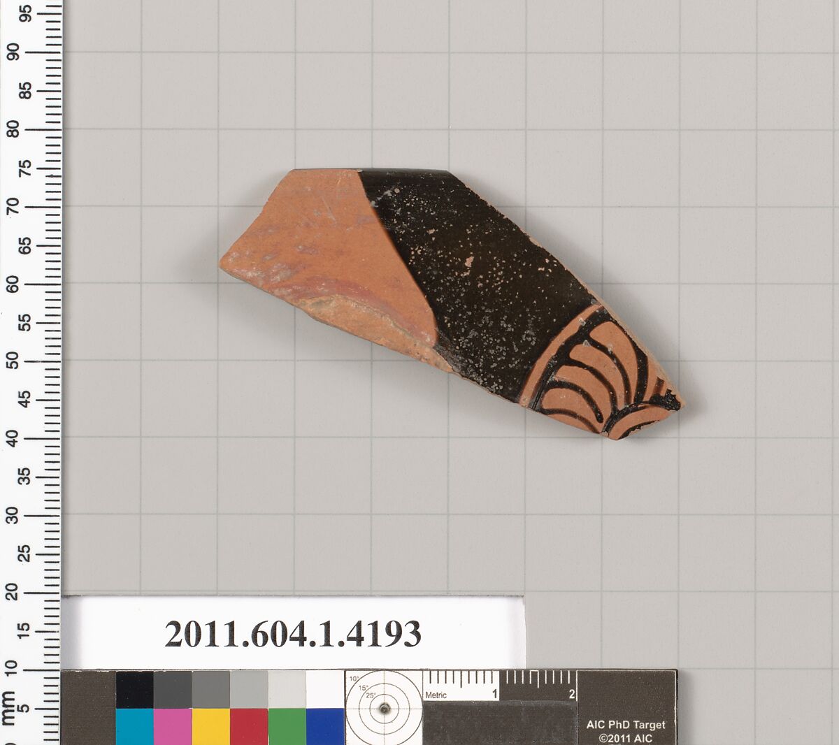 - Title:Terracotta rim fragment of a kylix (drinking cup)