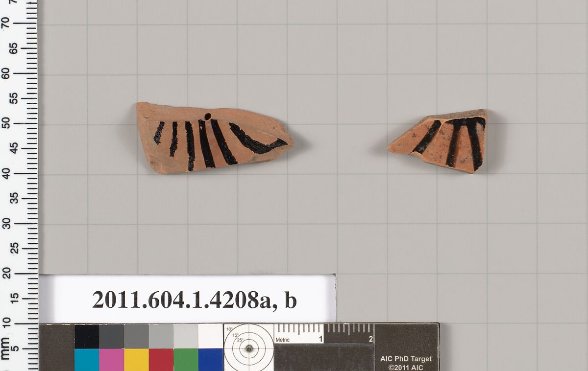 - Title:Terracotta fragments of kylikes (drinking cups)