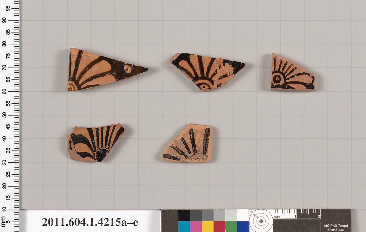- Title:Terracotta fragments of kylikes (drinking cups)