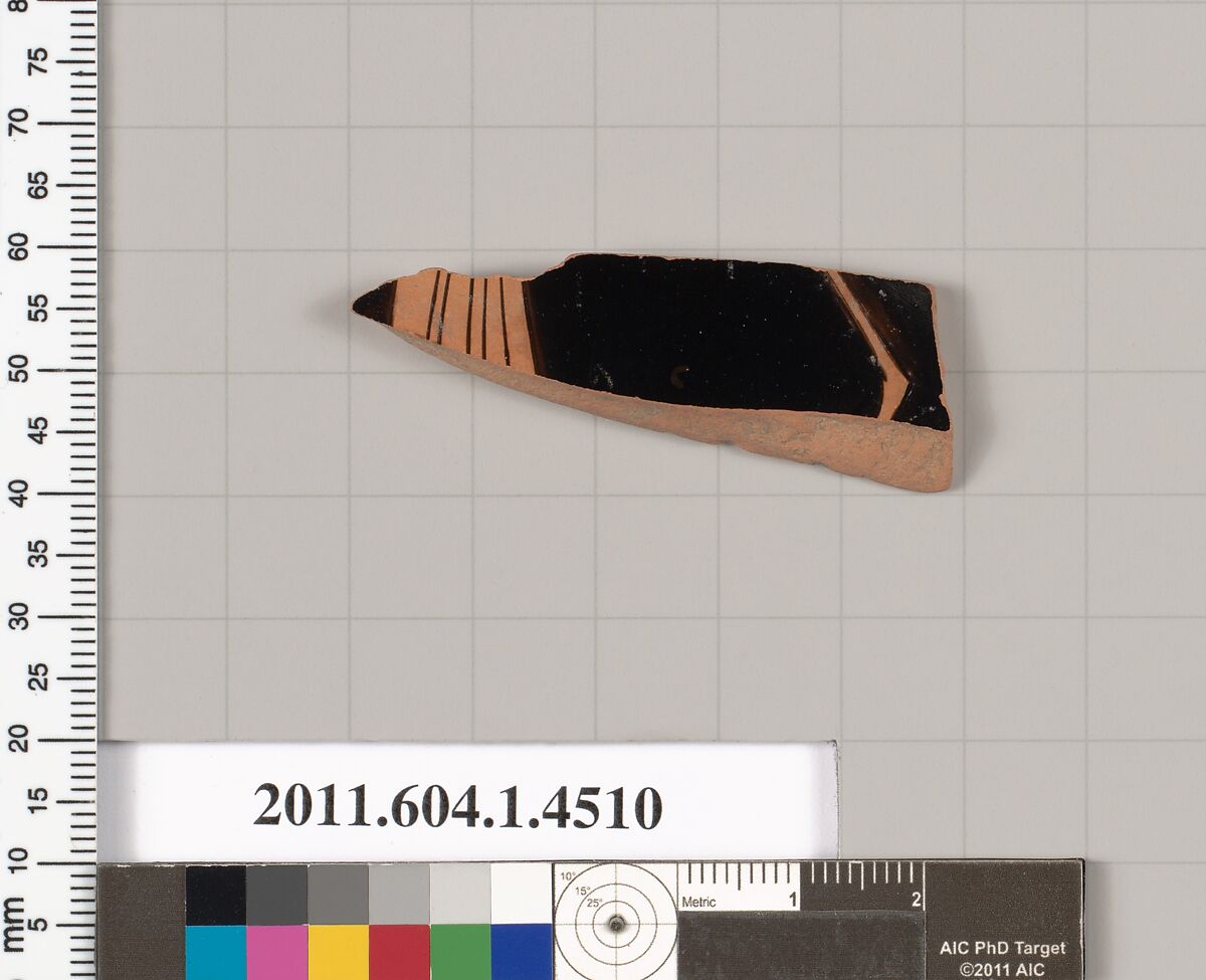 - Title:Terracotta fragment of a kylix (drinking cup)