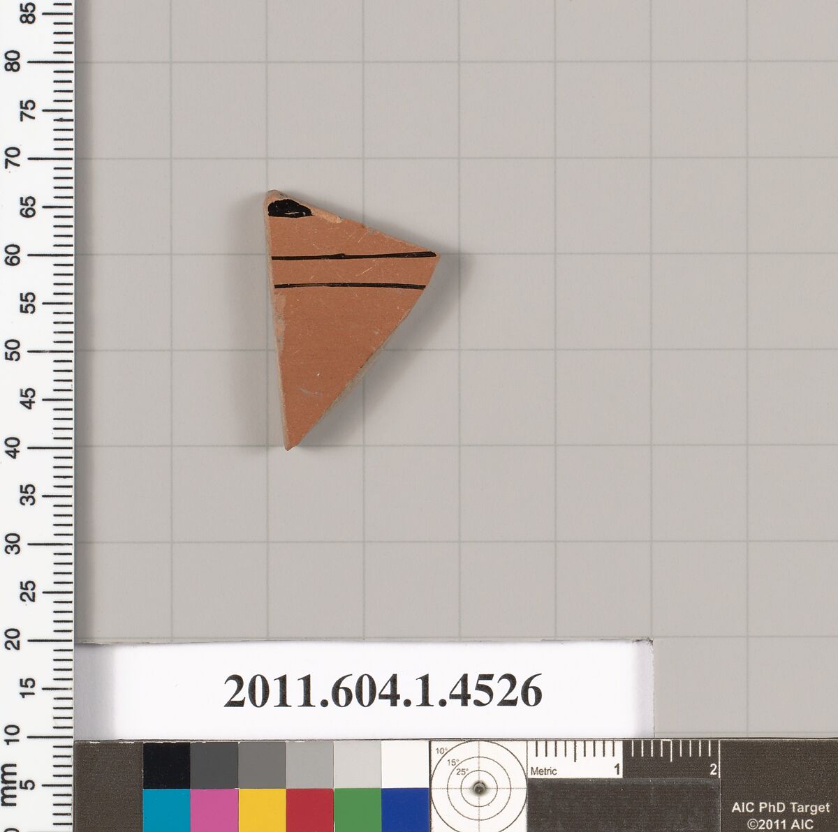 - Title:Terracotta fragment of a kylix (drinking cup)