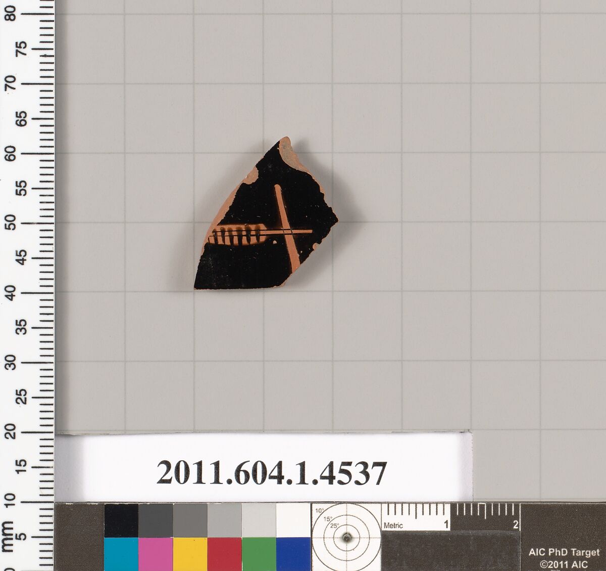 - Title:Terracotta fragment of a kylix (drinking cup)