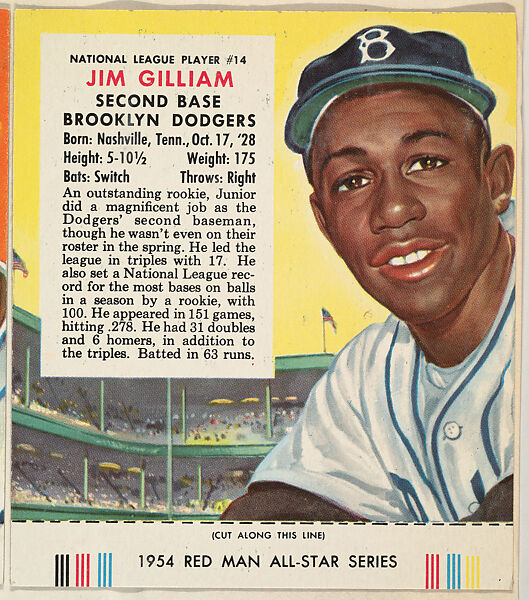 - Title: Jim Gilliam, from the Major League All Stars series (T234), issued by Red Man Chewing Tobacco