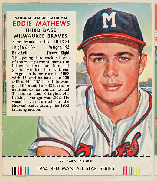 - Title: Eddie Mathews, from the Major League All Stars series (T234), issued by Red Man Chewing Tobacco