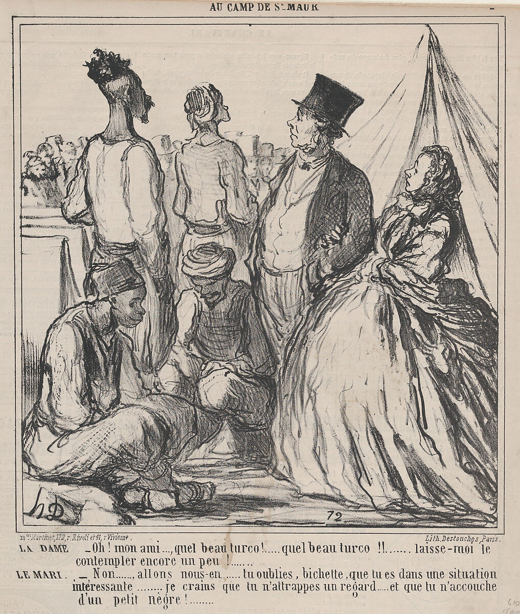 - Title: Oh! Mon ami...., quel beau turco!..., from Au Camp de Saint-Maur, published in Le Charivari, August 15, 1859