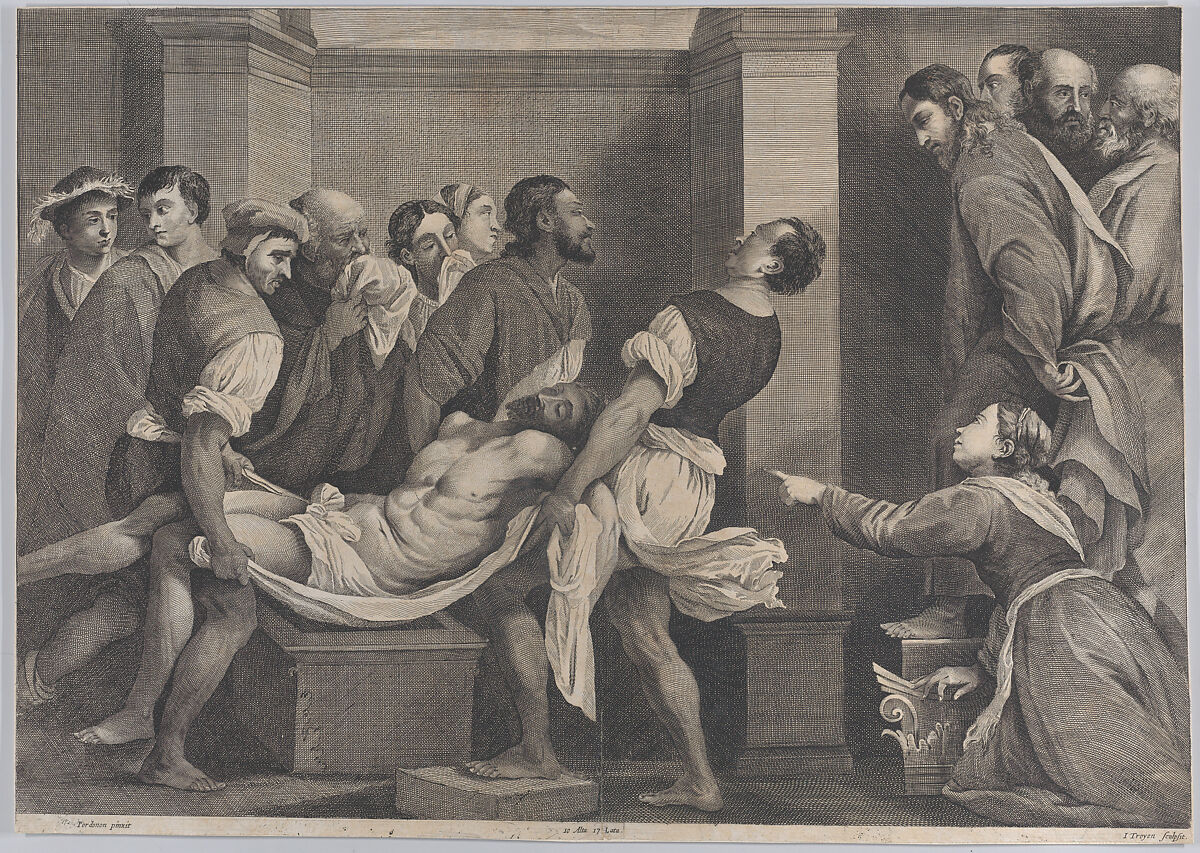 - Title: The raising of Lazarus, who is carried by three men at left, while his sister and Christ look on at right; from 'Theatrum Pictorium', after Pordenone
