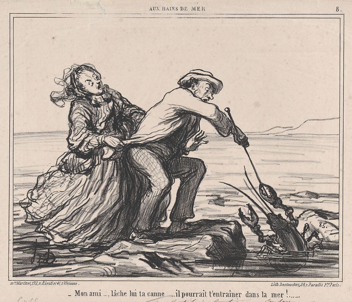 - Title: Mon ami..., lâche lui ta canne.... from Aux Bains de Mer, published in Le Charivari, September 28, 1859