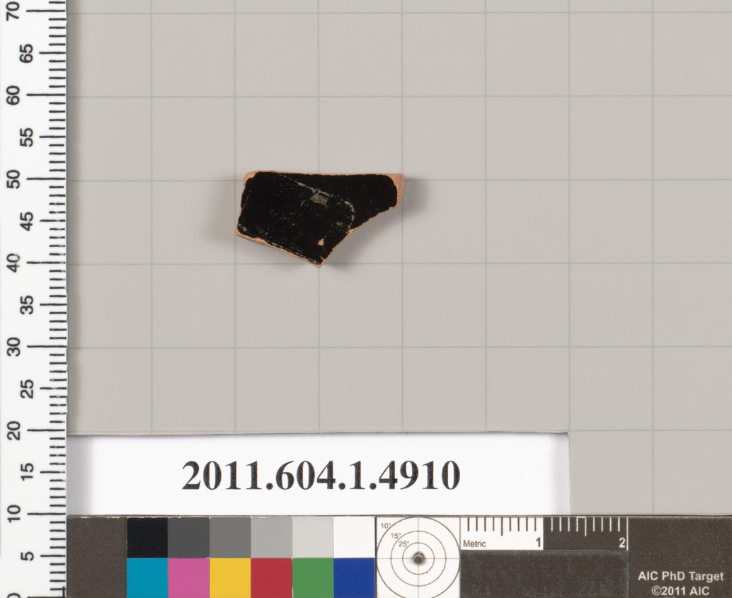 Exterior, tip of nose, chin, neck, and bit of shoulder of draped figure with a stick