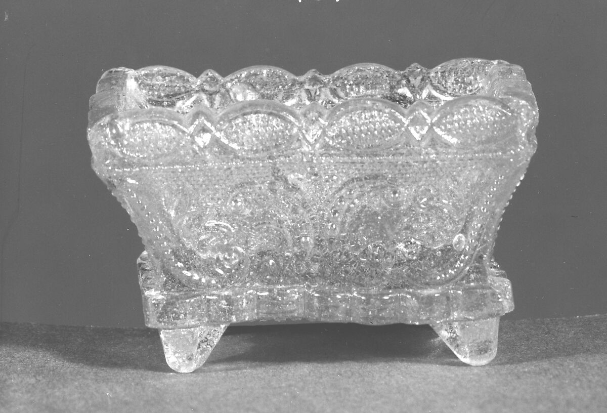 Salts of this design were made in New York at the Mt. Vernon Glass Company or at the Vernon, or Saratoga Glass Works in Saratoga. They were also produced at the Boston and Sandwich Glass Company in Sandwich, Massachusetts. It is believed that pieces made of bottle glass may come from New York while those of flint glass are more likely to be Sandwich manufactures.