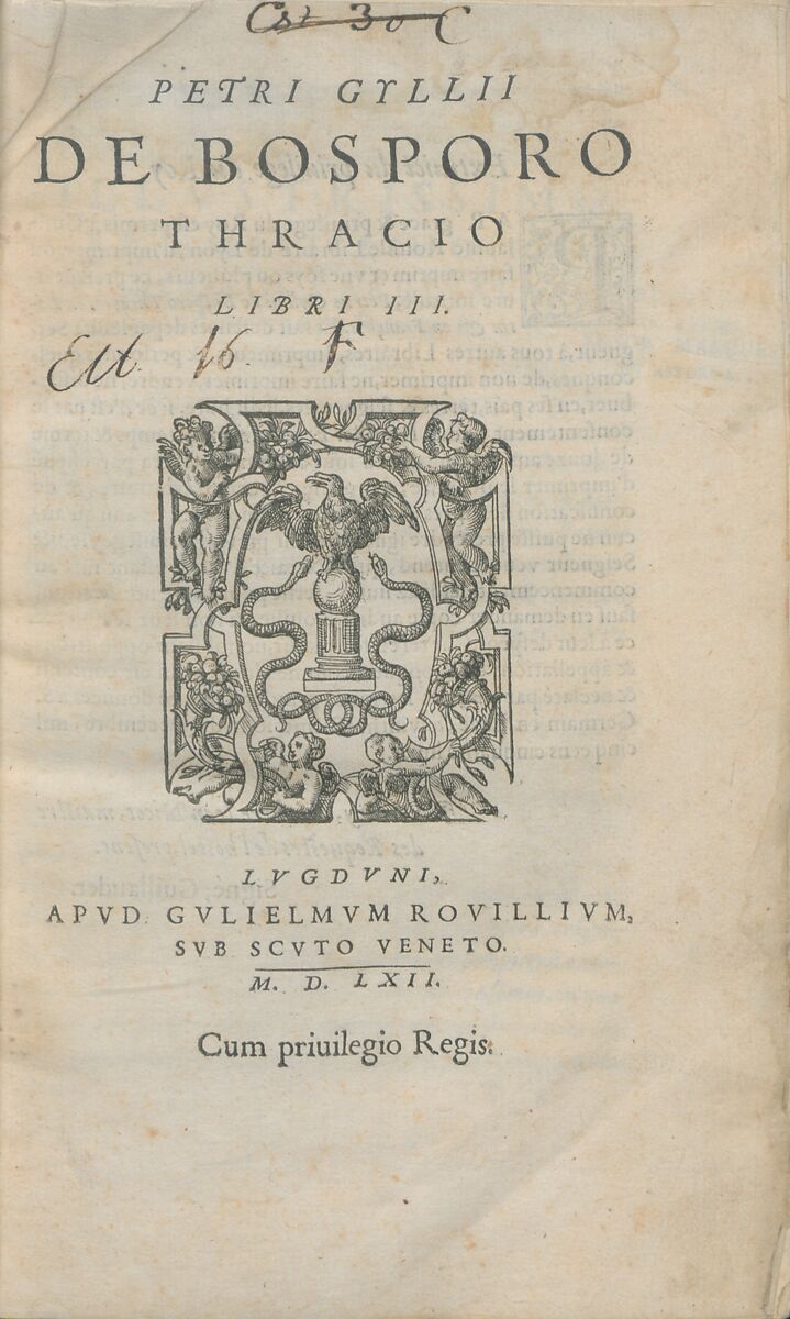- Title: Petri Gyllii De Bosporo thracio libri III ; Petri Gyllii De topographia Constantinopoleos