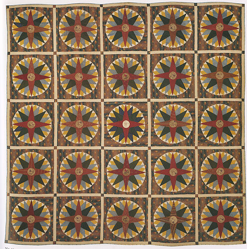 The quilt was likely made by or for Julianna Fenstermacher on the occasion of her marriage to Benneville Fenstermacher. The square that contains Julianna’s name reads in German: "Julianna. Fenstermacher/ her carpet/ 1855." Benneville’s name can be found in the square beside hers. The quilt also includes the names of Julianna’s parents, Hannah and Tobias Diehl, and her brothers and sisters, Dianna Heinrich, Jacob, and Emilie Diehl. This quilt demonstrates the bright colors and sentimental traditions popular with German-speaking immigrant communities in Pennsylvania.