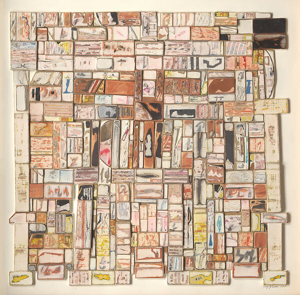 - Medium: Collage of paper boards with crayon, opaque paint, and metallic paint on paper board panel