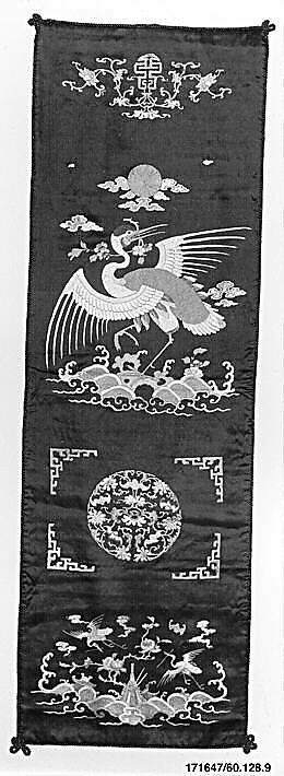 - Medium: Silk, metallic thread; on silk; lined with linen(?)