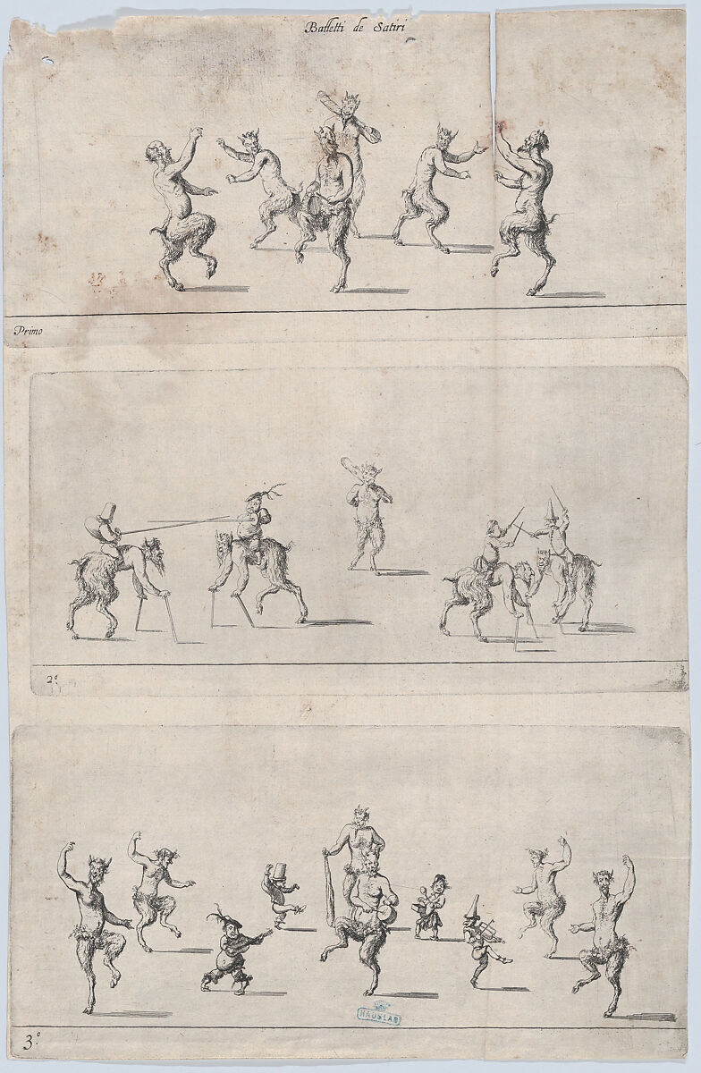 Three plates on one sheet illustrating ballets performed by satyrs.