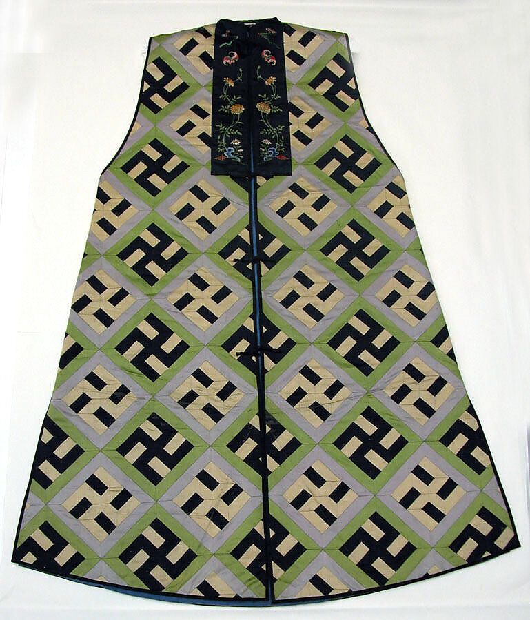 A long vest with patchwork, such as this example, was often worn by a female Buddhist priest in Chinese legendary plays. In such performances, both male and female Buddhist priests are depicted with magic powers to help righteous people in poor circumstances or to subdue demons and save the world.