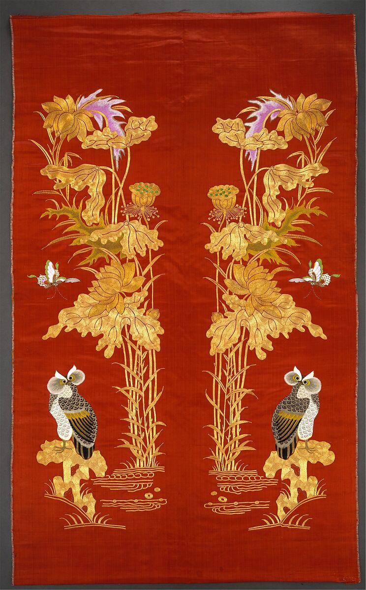 - Medium: Silk, metallic thread; on silk