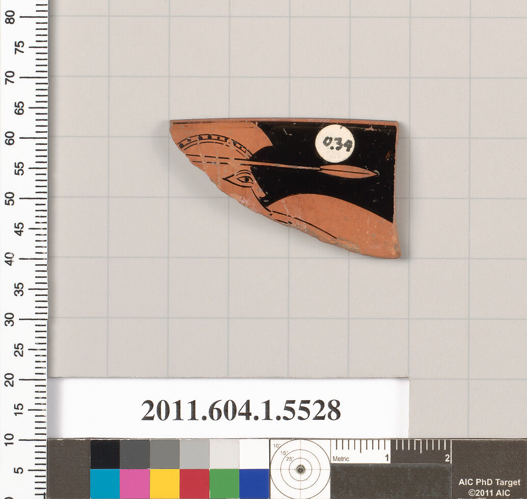 - Title: Terracotta rim fragment of a kylix (drinking cup)