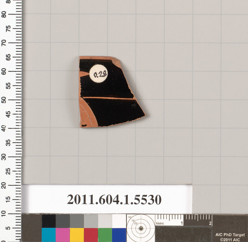 - Title: Terracotta rim fragment of a kylix (drinking cup)