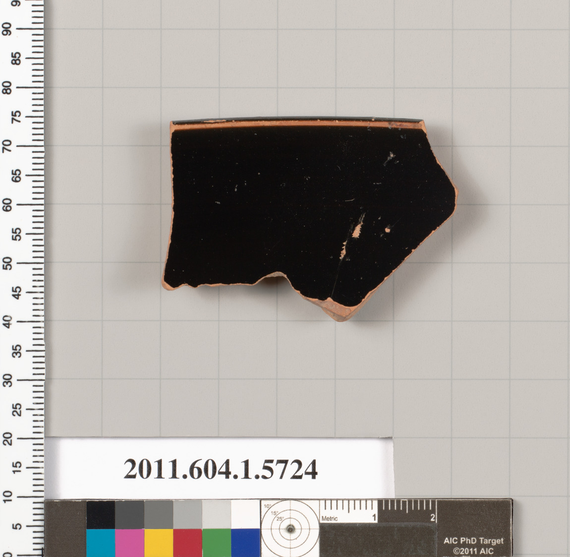 Terracotta rim fragment of a kylix: eye-cup  (drinking cup), Terracotta, Greek, Attic