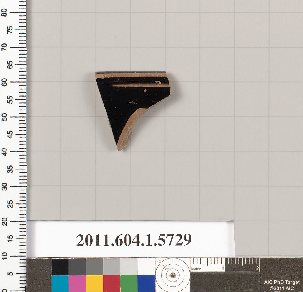 - Title: Terracotta rim fragment of a kylix: eye-cup (drinking cup)