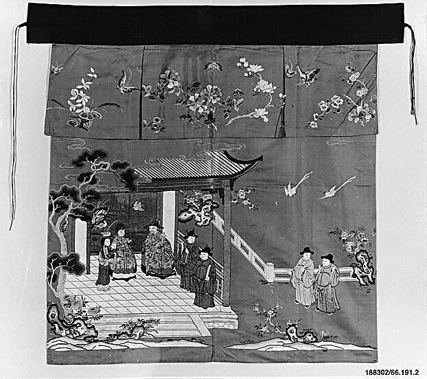 - Medium: Silk, metallic thread; on silk; lined with cotton