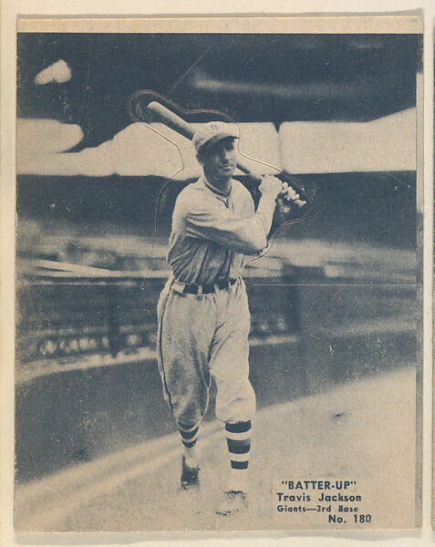 - Title: Card 180, Travis Jackson, Giants, 3rd Base (Blue), from the Batter Up series (R318) issued by the National Chicle Gum Company