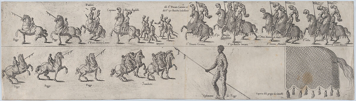 Plate depicting Donato Carcano, from a series of twelve showing knights and their attendants dressed for a tournament (plate 3)