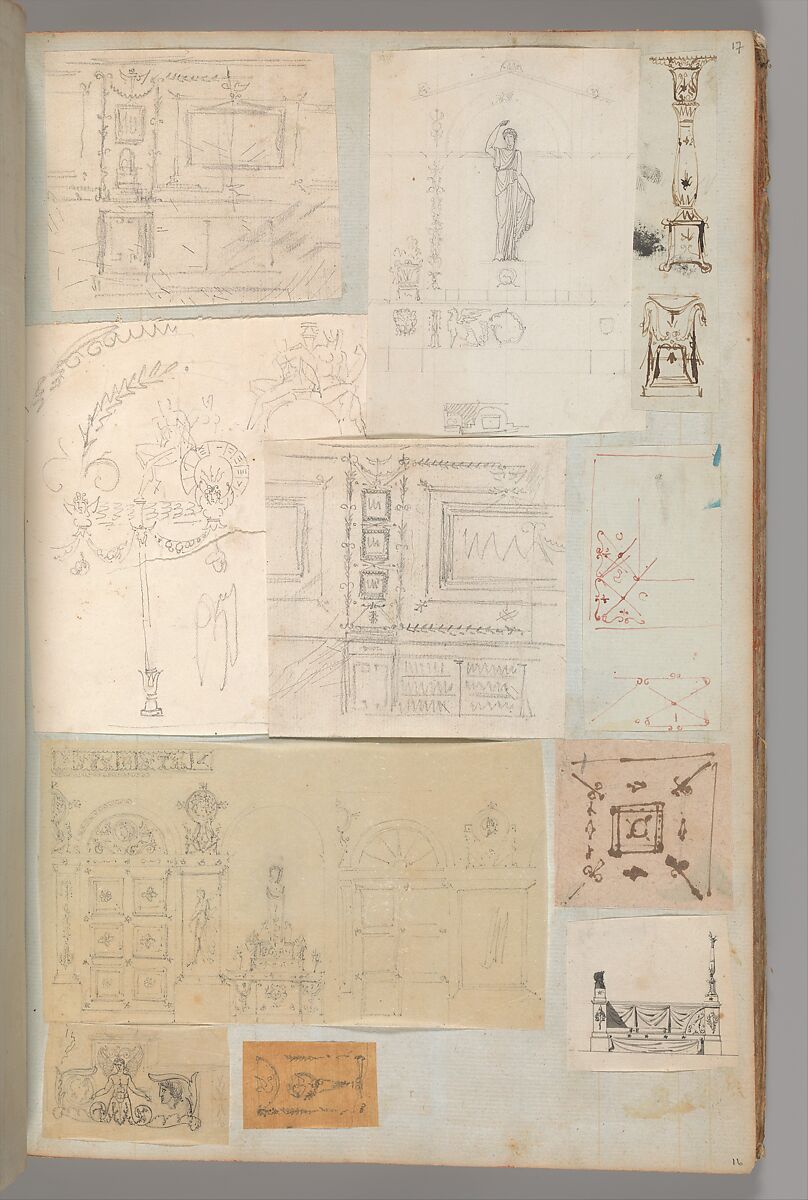 - Title:Page from a Scrapbook containing Drawings and Several Prints of Architecture, Interiors, Furniture and Other Objects