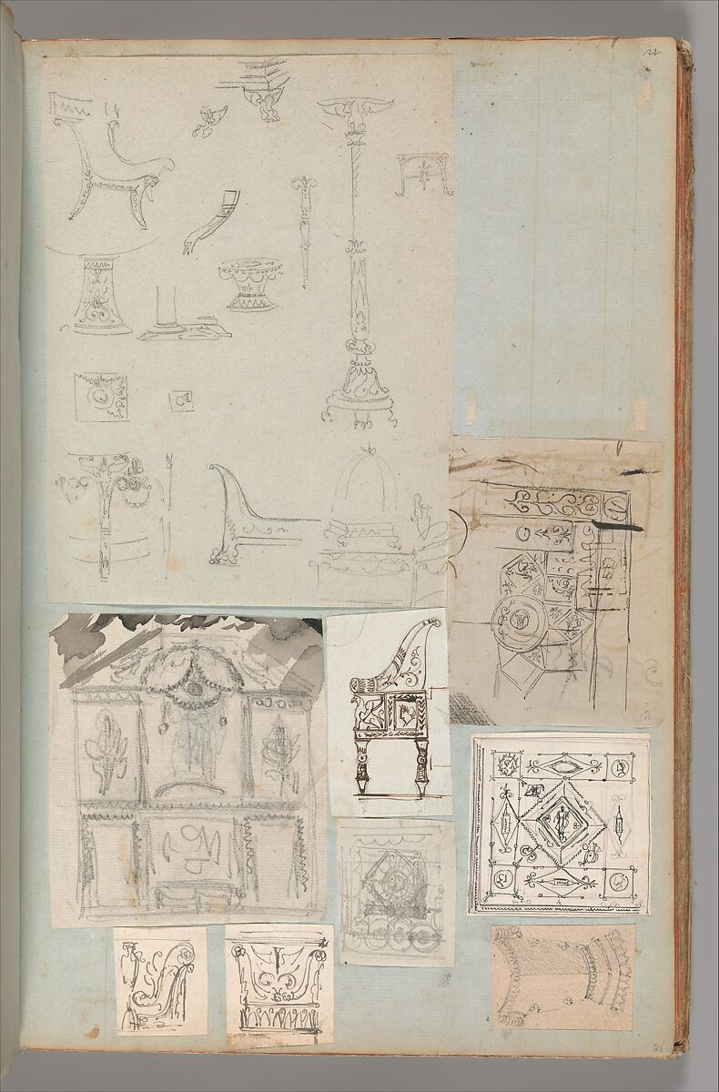 - Title:Page from a Scrapbook containing Drawings and Several Prints of Architecture, Interiors, Furniture and Other Objects