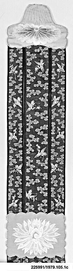 - Medium: Plaques-silk, on silk, backed with cardboard; streamers-silk, on silk, lined with cotton