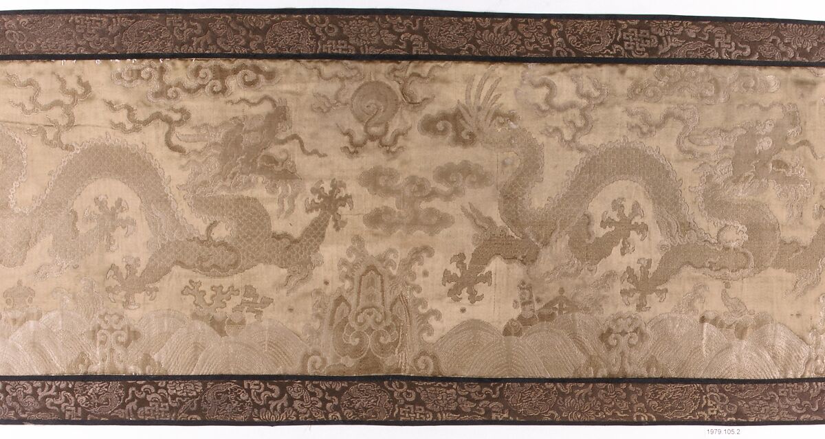 - Medium: Brocaded satin with two running dragons