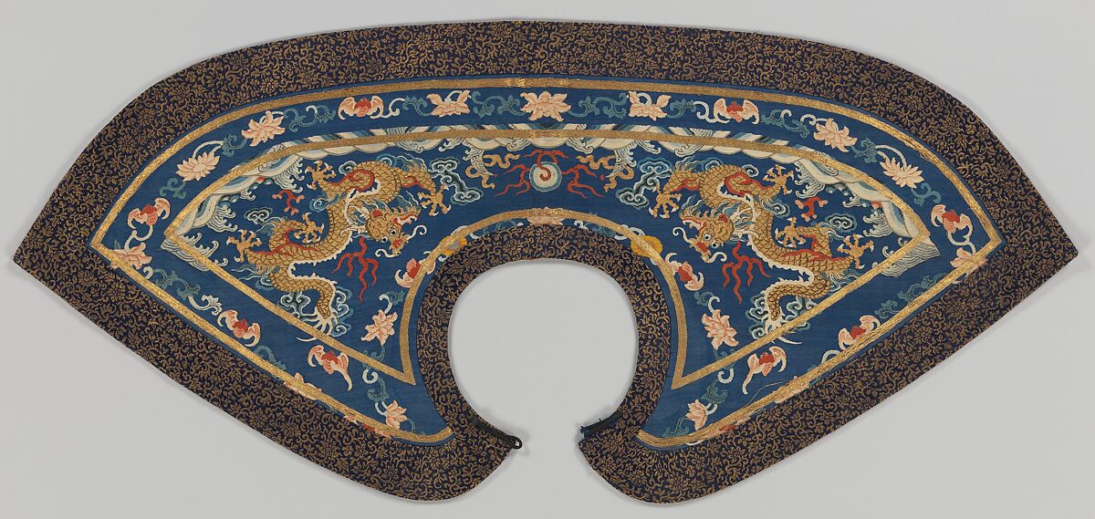 Formal portraits of Qing-dynasty men and women—members of the imperial family, the nobility, and court officials—show them wearing this type of detachable collar (pi ling) over their formal court robes.