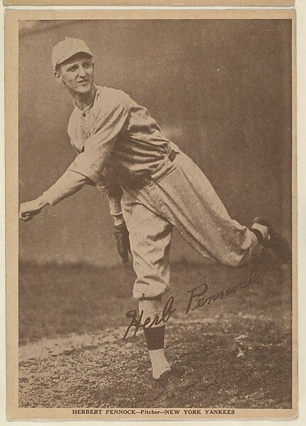 - Title:Herbert Pennock, Pitcher, New York Yankees, from the Portraits and Action series (R316) issued by Kashin Publications