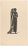 Son of the leading actress Ellen Terry, and architect Edward William Godwin, Craig himself became a gifted actor and stage designer. This print of Hamlet listening to a mysterious whisperer was made as Craig developed a visionary staging of the play for Constantin Stanislavsky at the Moscow Art Theatre. For that 1912 production, he conceived of the ghost in Shakespeare as two beings—the first a skeletal representation of Hamlet’s murdered father in Act 1—and the second an androgynous Daemon or alter ego, who entices the prince towards death later in the play. To demonstrate his ideas, Craig built model sets and carved figures out of wood in low relief to model the actors’ movements. Experimenting, he discovered that these could be printed to create "black figure" images.