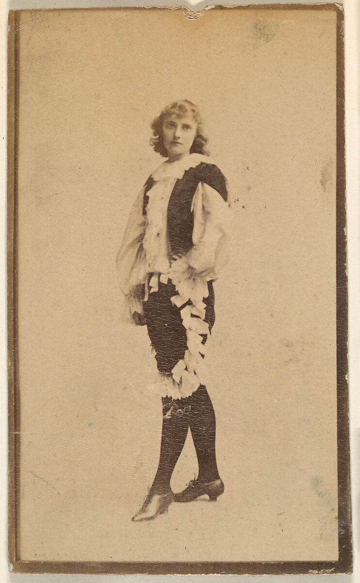 - Title: Actress wearing costume with ruffled blouse and trousers, from the Actresses series (N668)