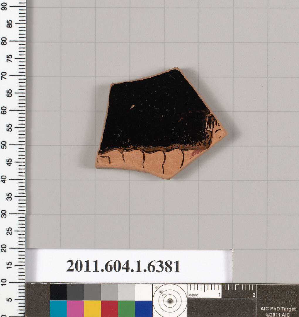 - Title:Terracotta fragment of a kylix (drinking cup)